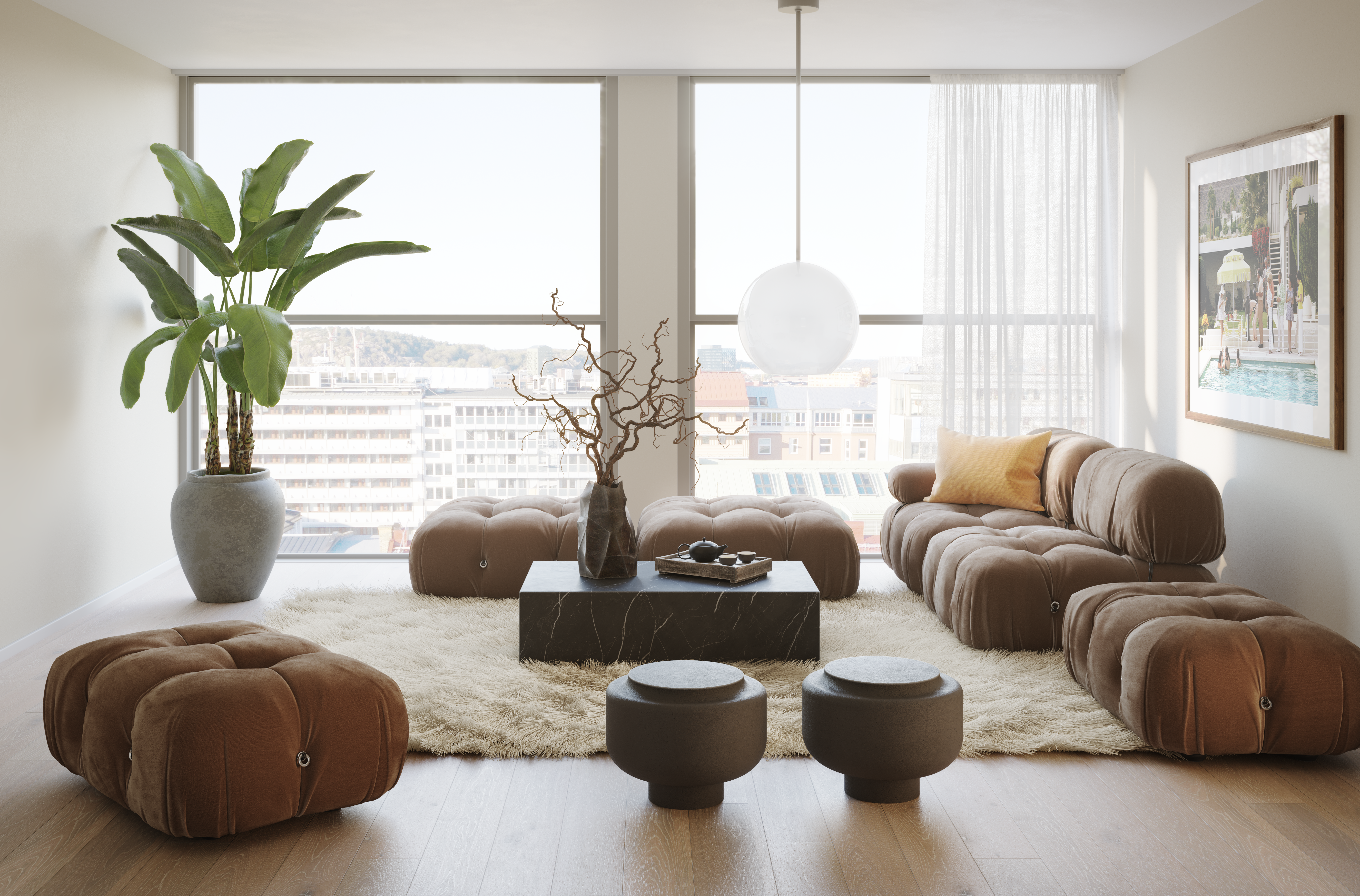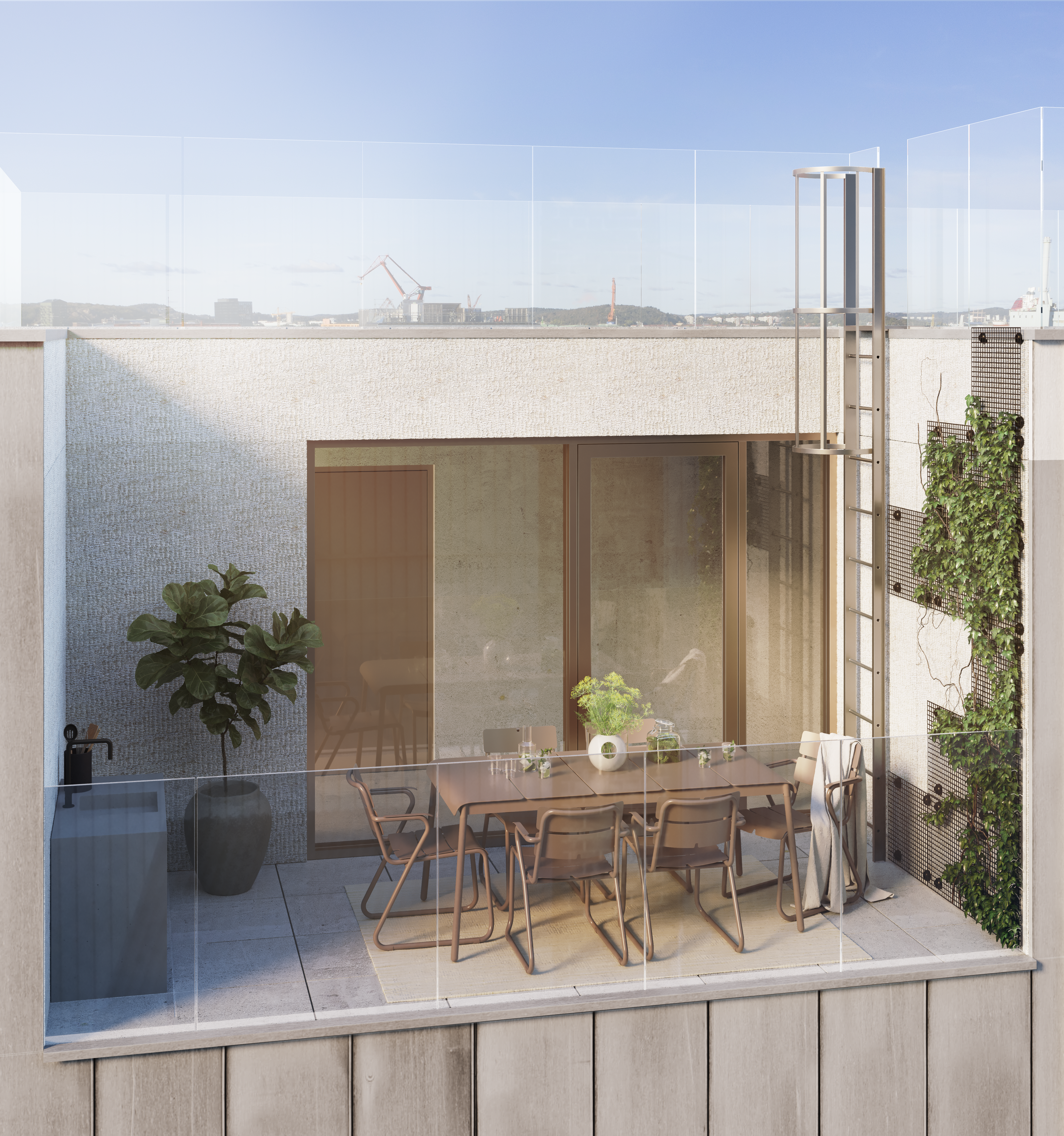 Lägenheterna är kvadratmetersmart planerade med genomgående gedigna materialval, omsorgsfullt utvalda detaljer och harmoniska proportioner. Till bostadsrätterna finns även tillgång till en gemensam takterrass i söderläge med utsikt över Skansen Kronan, samt en fin gård mellan byggnaderna.